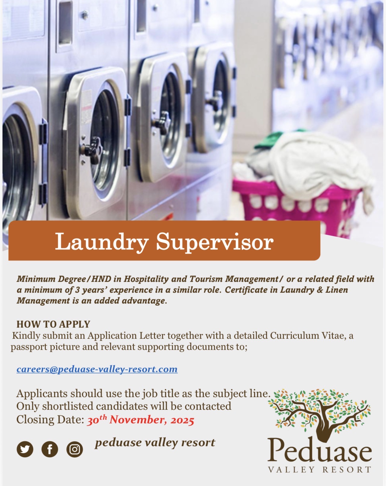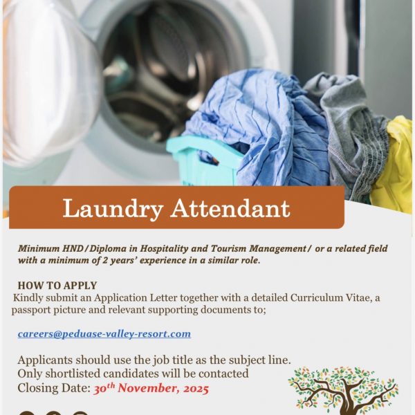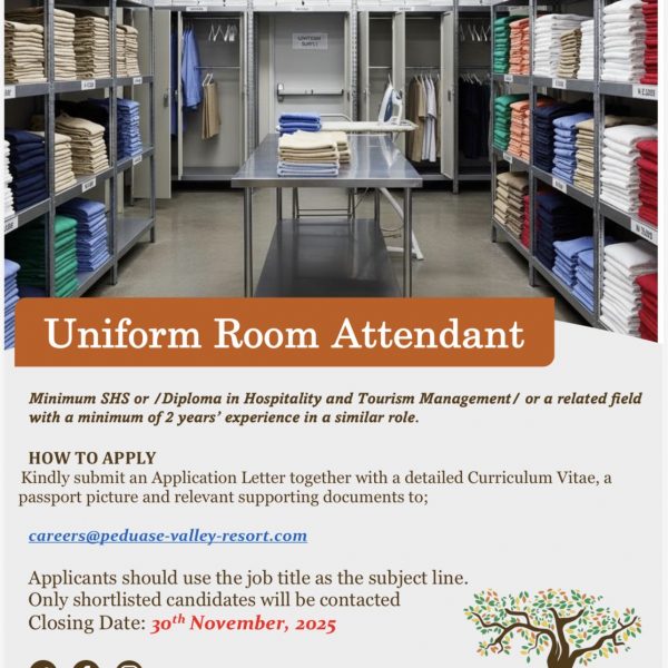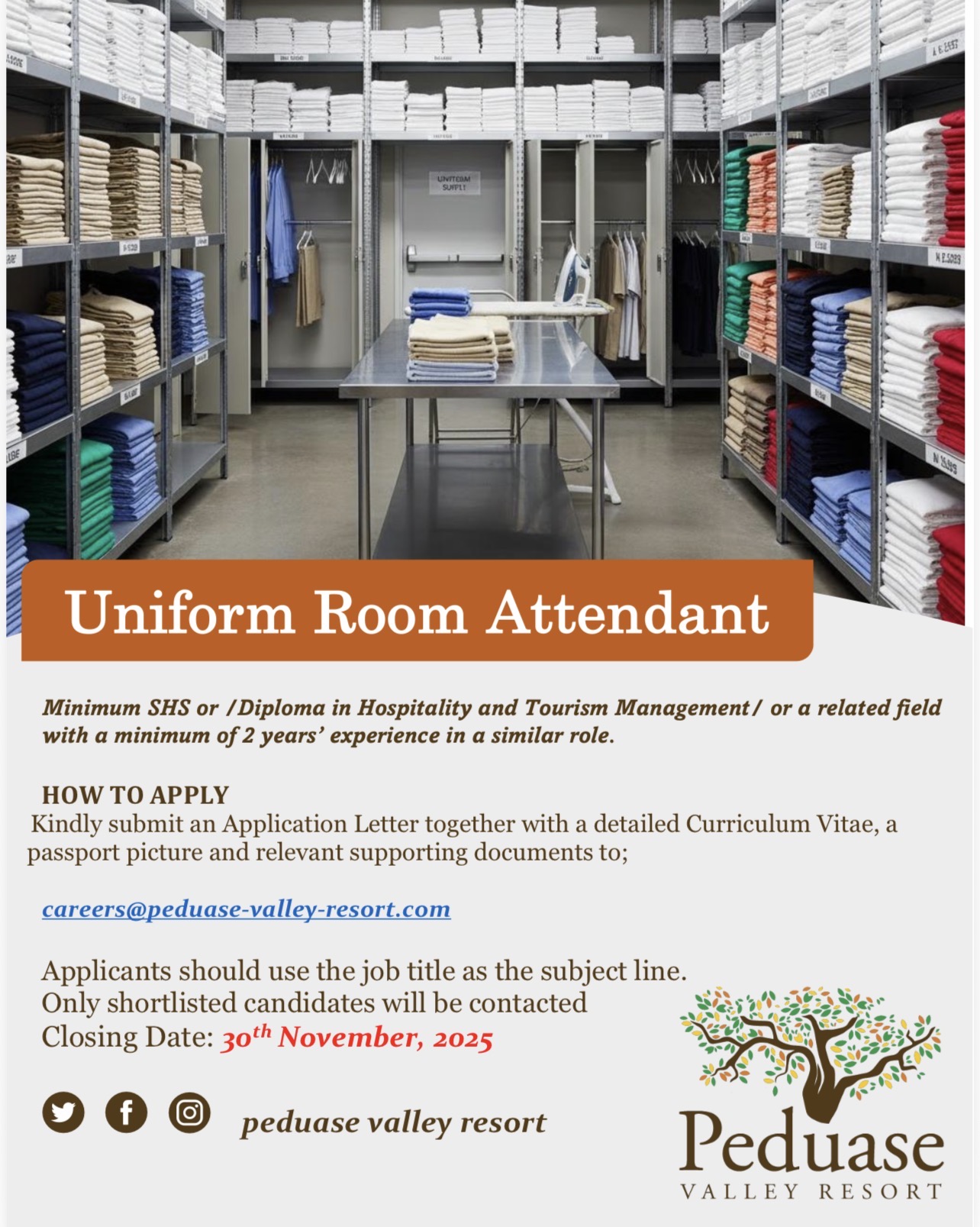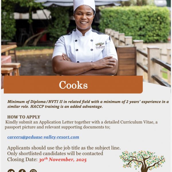 Peduase Valley Resort welcomes you to join their fast-growing organization and ambitious team within a great working environment and strong core values: Integrity, Vision, Excellence, and Team Work.