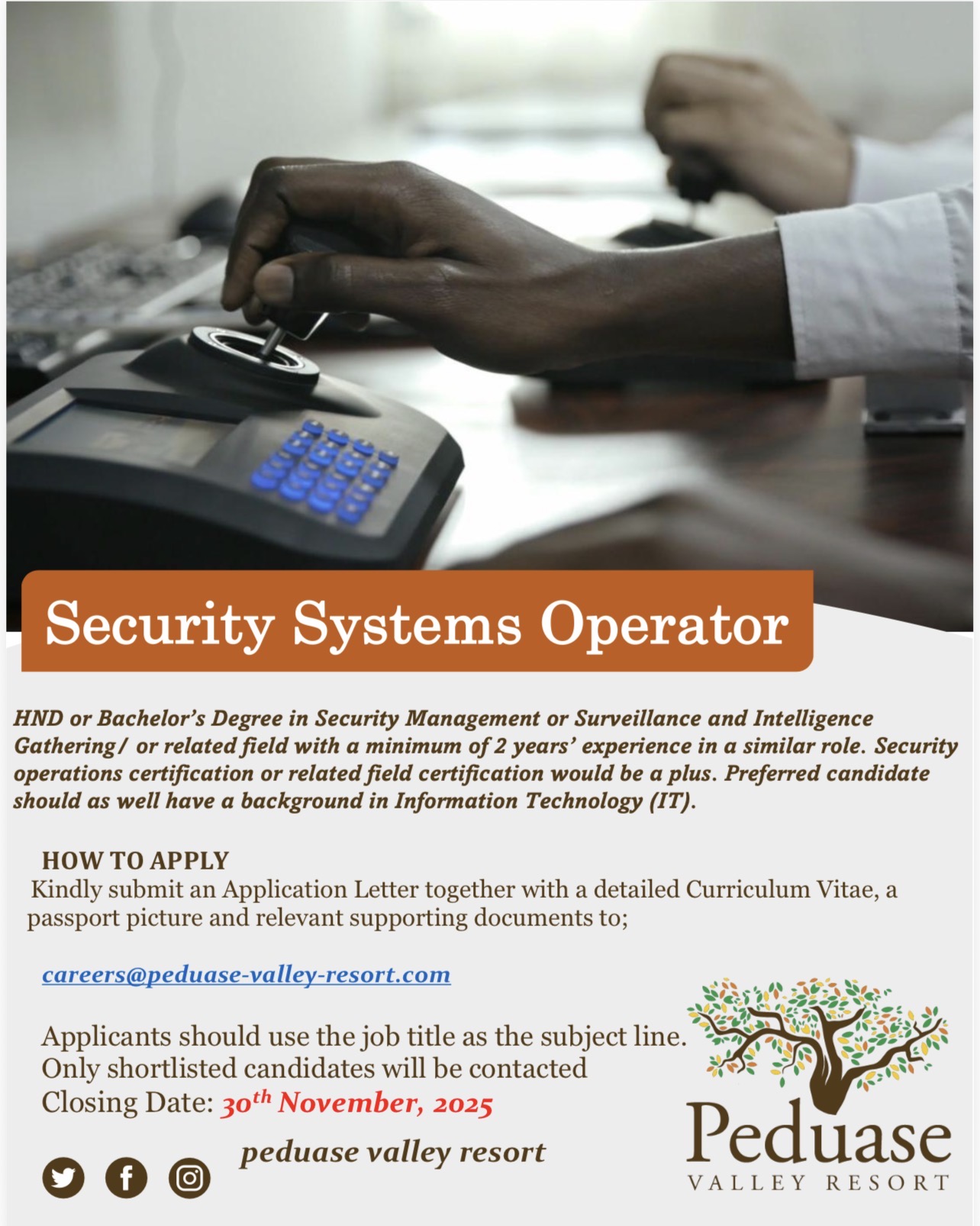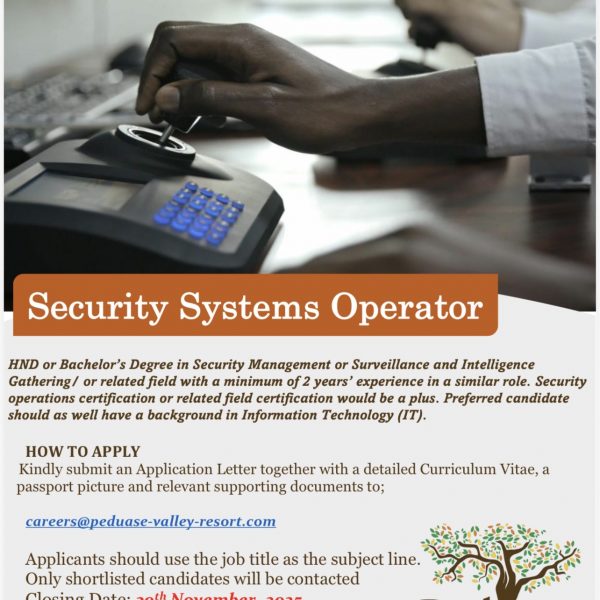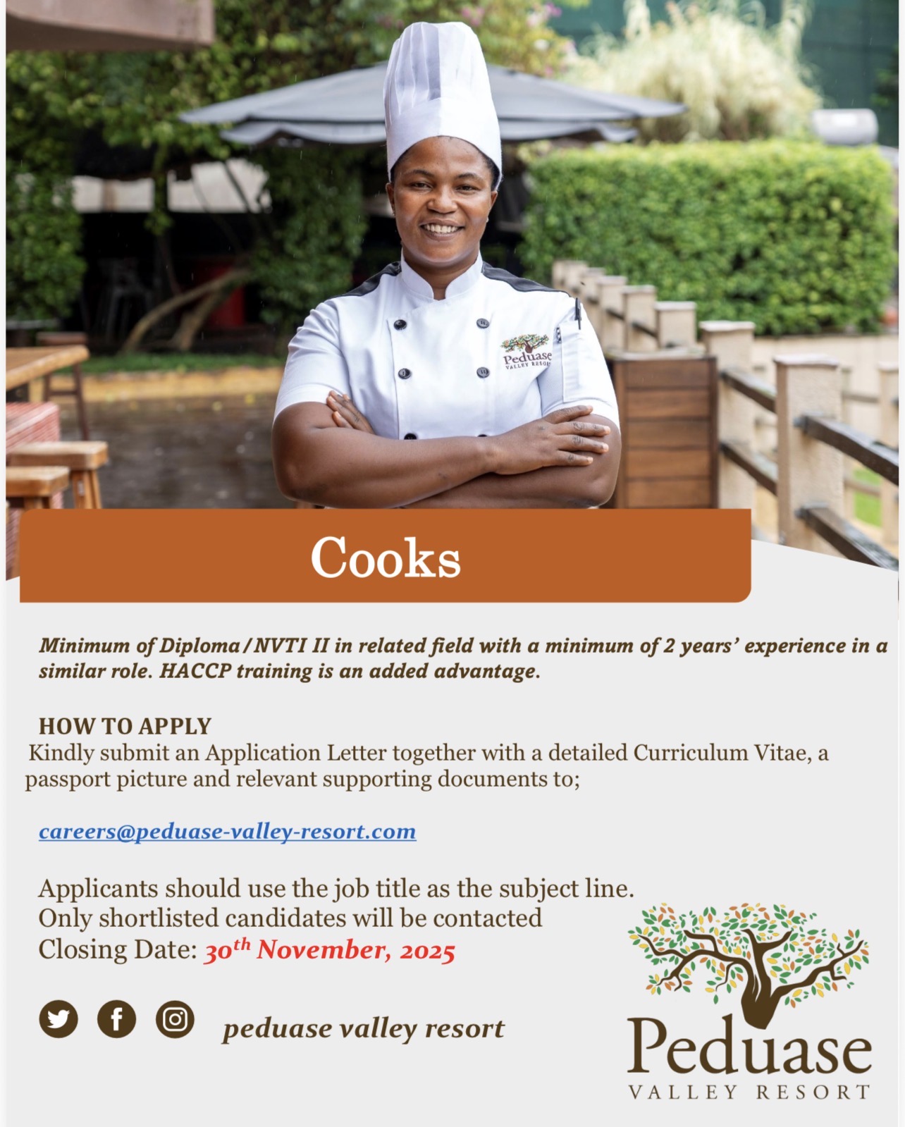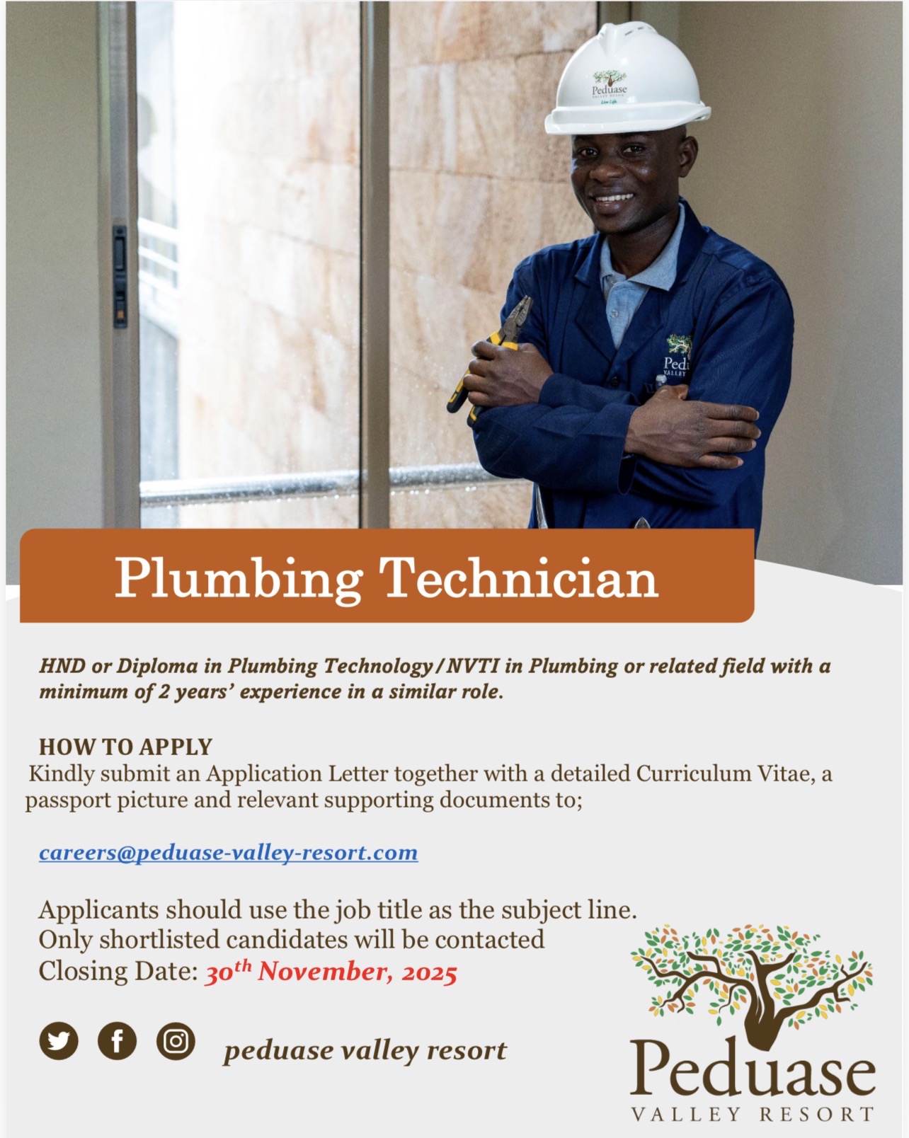 Peduase Valley Resort welcomes you to join their fast-growing organization and ambitious team within a great working environment and strong core values: Integrity, Vision, Excellence, and Team Work.